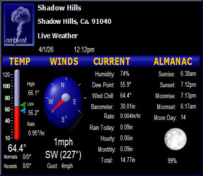 Shadow Hills, Ca 91040 Current Weather Conditions